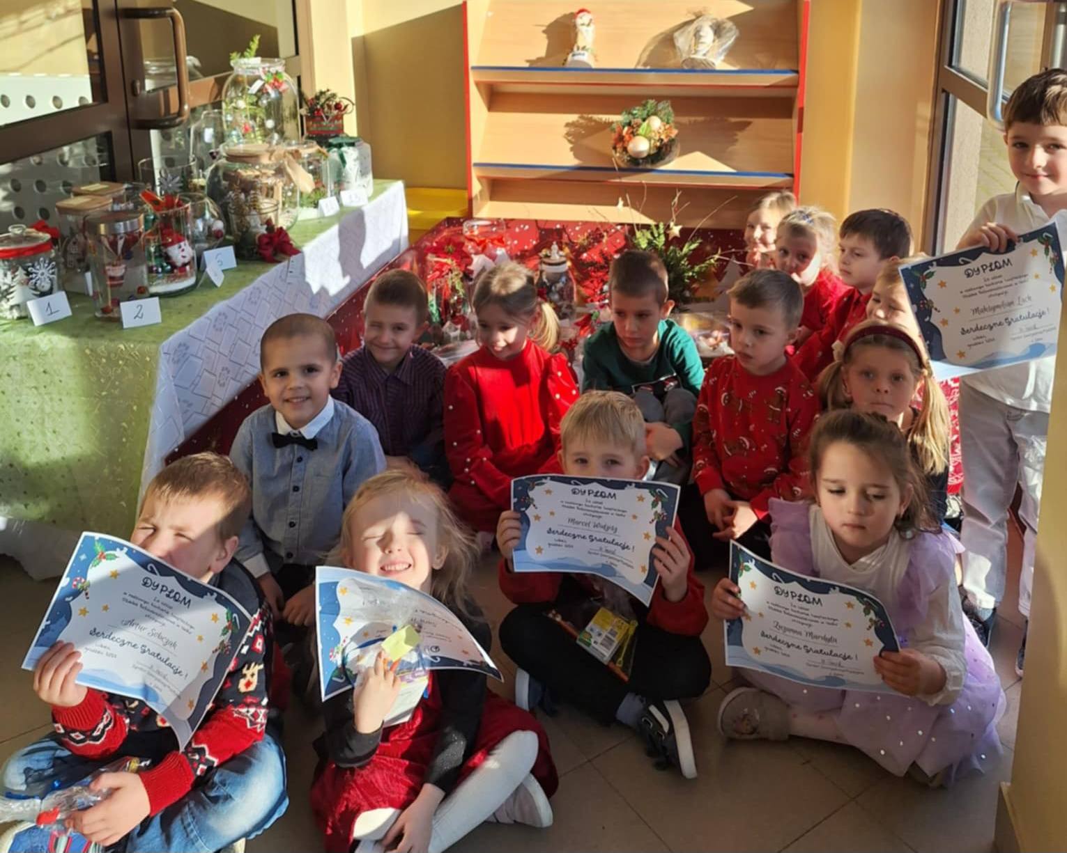Z radością  informujemy, że rodzinny konkurs na najpiękniejszą świąteczną ozdobę w słoiku został rozstrzygnięty. Wspaniale było zobaczyć, jak dzieci wraz z rodzicami tworzą prawdziwe małe dzieła sztuki, pełne świątecznej magii. W słoikach znalazły się miniaturowe choinki, zimowe krajobrazy, światełka i mnóstwo drobnych dekoracji, które rozświetliły nasze przedszkole kreatywnością i radością. Każda praca była wyjątkowa i pokazała jak wspaniale rodziny potrafią współpracować i wspólnie tworzyć coś pięknego. Serdecznie gratulujemy wszystkim uczestnikom.
