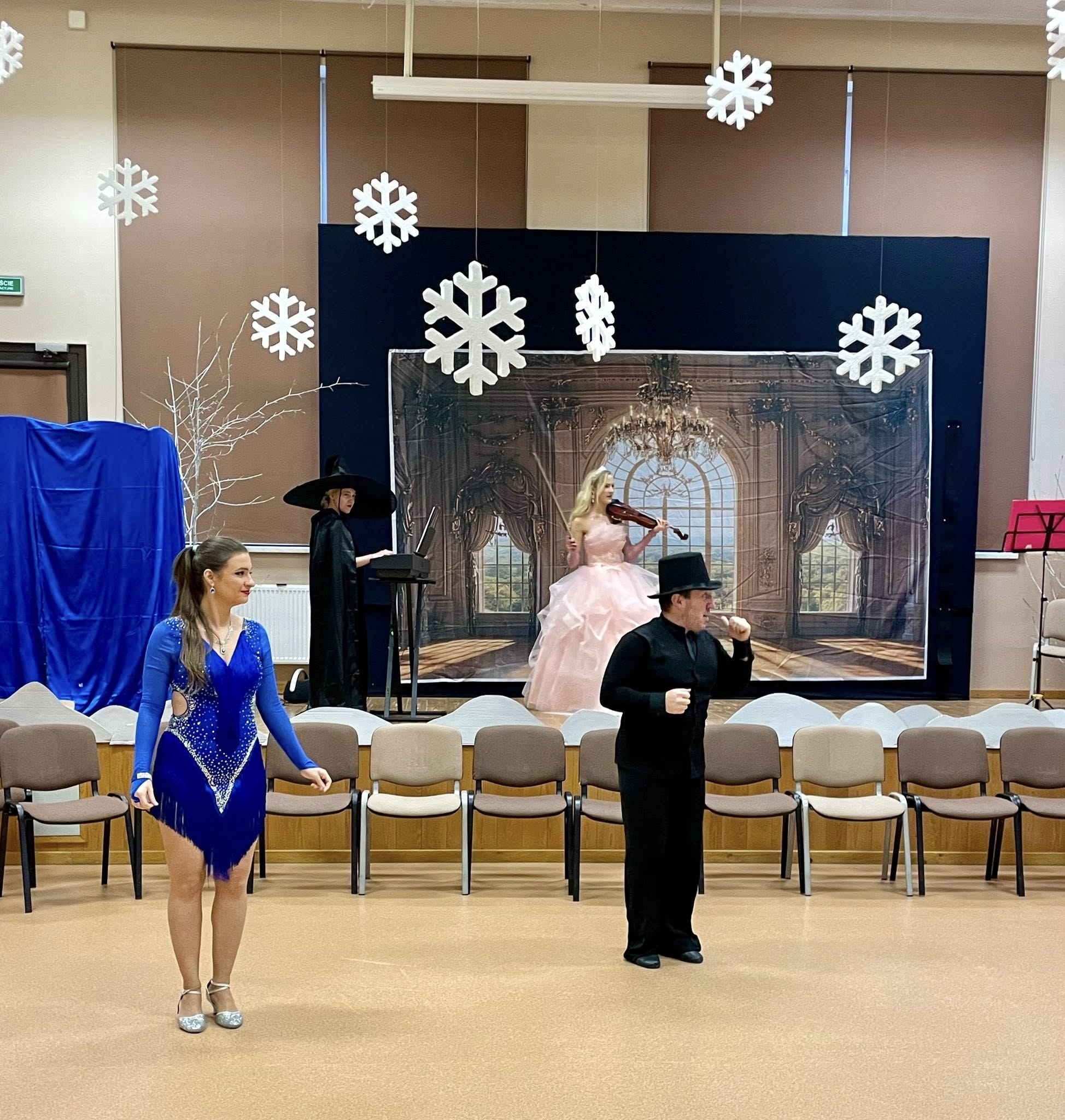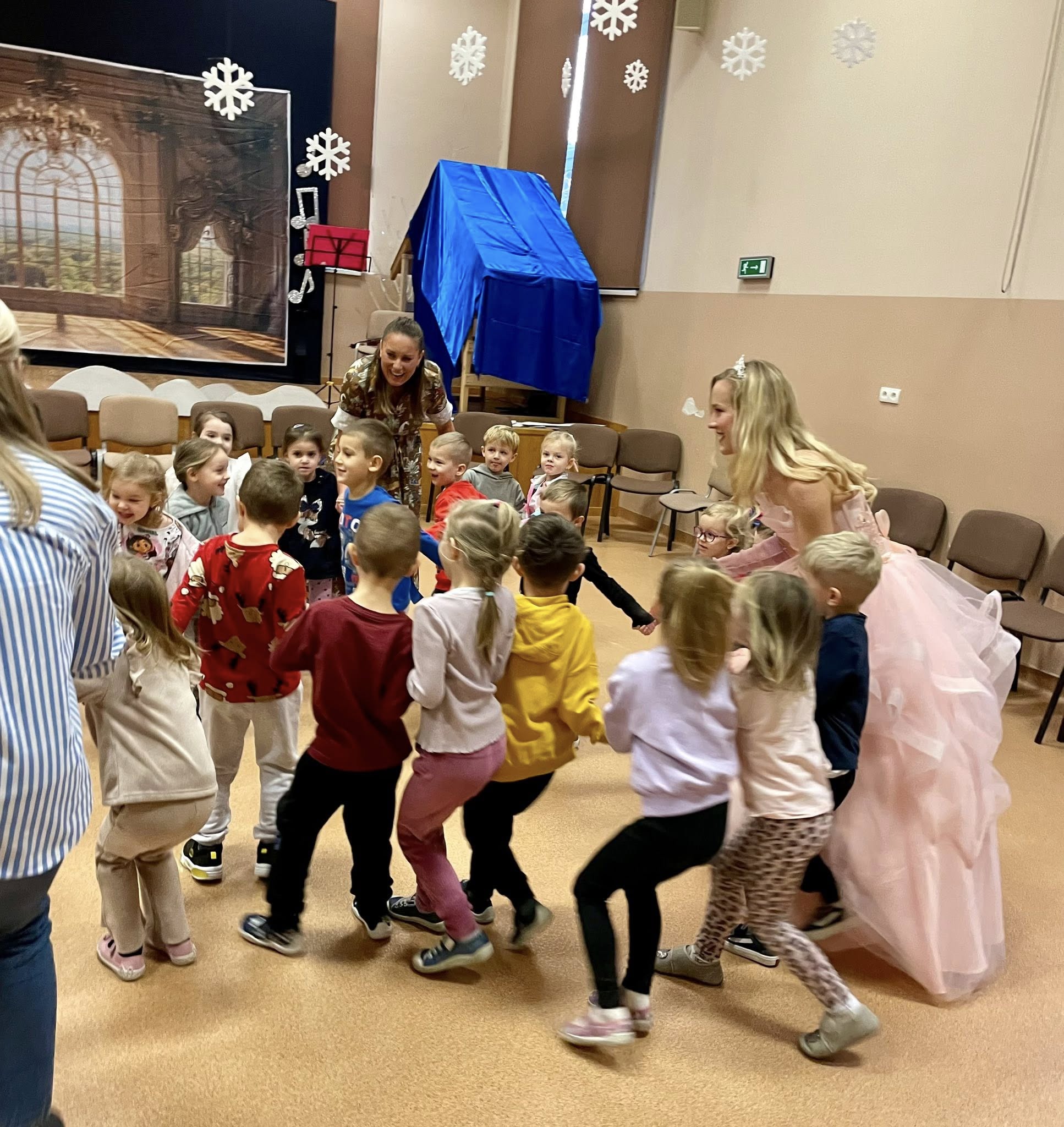 W naszym przedszkolu odbył się wyjątkowy spektakl pt. „Poszukiwanie zaginionego rytmu”. Dzieci uczestniczyły w niezwykłej muzycznej przygodzie, oglądając tancerzy w kolorowych strojach, którzy wykonali sambę, czachę, tango oraz walca. Na scenie towarzyszyła im muzyka na żywo w wykonaniu skrzypiec i keyboardu, co sprawiło, że przedstawienie było pełne energii, a mali widzowie aktywnie włączali się w poszukiwania skradzionych nutek, porwanych przez czarownicę Fortissimę, co sprawiło, że przedstawienie było bardzo wciągające .Dzieci miały też okazję  nauczyć się prostych elementów prezentowanych tańców, co wprowadziło dodatkowy wymiar edukacyjny i ruchowy. Spektakl dostarczył dzieciom mnóstwo radości, pozwolił rozwijać wyobraźnię, poczucie rytmu oraz sprawność ruchową, a także pokazał, że piękno muzyki i tańca potrafi wciągną każdego widza.