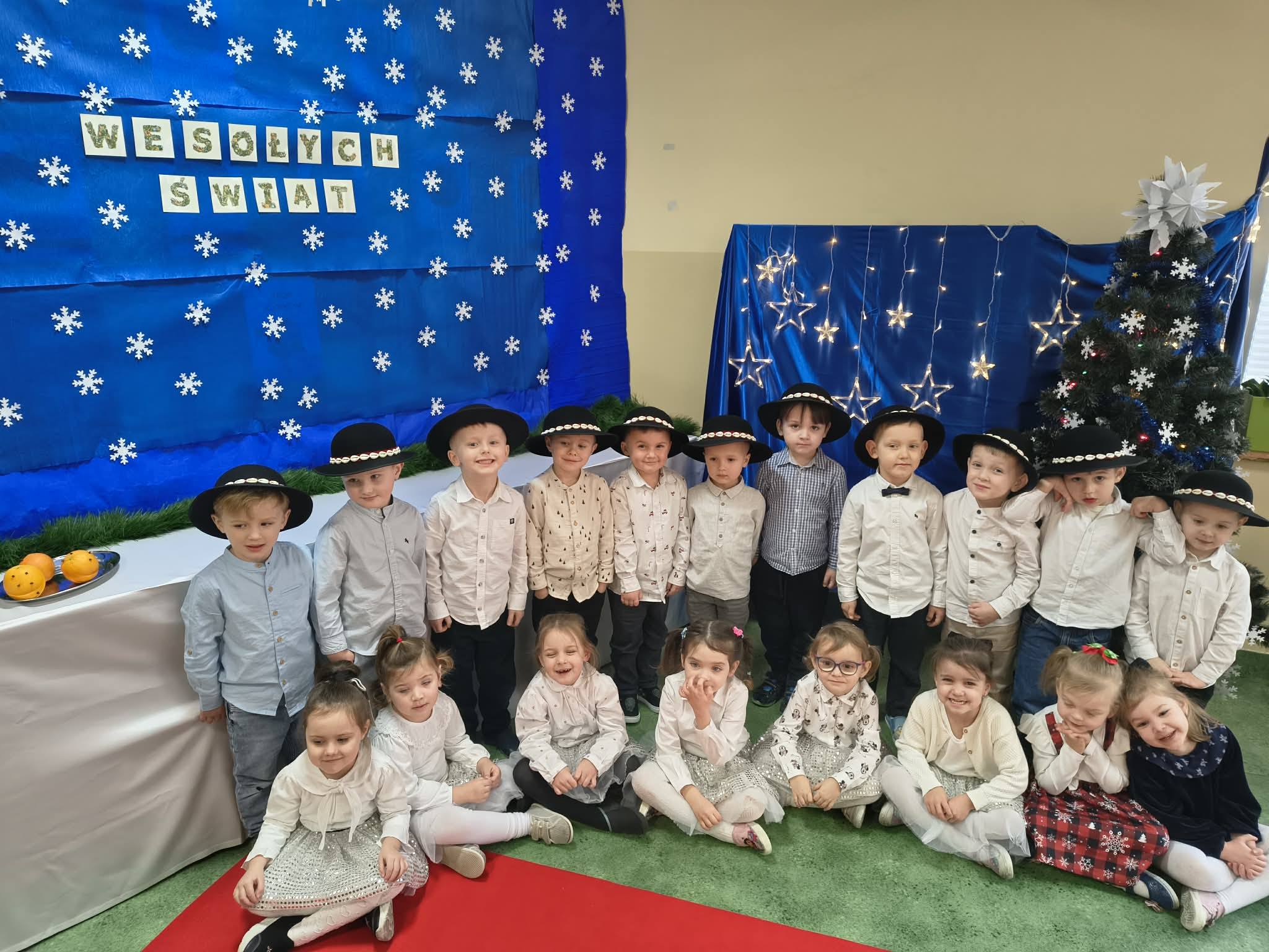 Zanim jednak zawitał w progi przedszkola, dzieci obejrzały wspaniały spektakl pt. „Czyje to ślady”, przygotowany przez nasze nauczycielki. Podczas wizyty Mikołaja dzieci z radością zaśpiewały dla niego piosenkę. Po występie Mikołaj osobiście wręczył każdemu dziecku paczkę, co wywołało mnóstwo radości i uśmiechów.  Świąteczna atmosfera i emocje tego dnia sprawiły, że ten moment na długo pozostanie w pamięci naszych przedszkolaków.