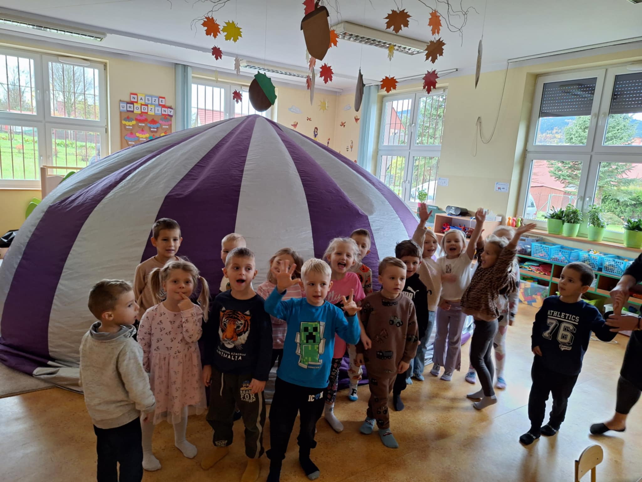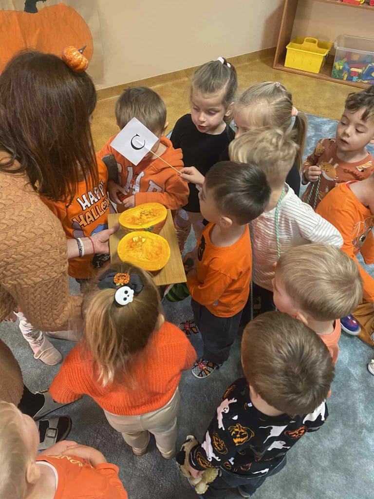 W naszym przedszkolu obchodziliśmy radosne i kolorowe Święto Dyni! Dzień rozpoczął się od degustacji pysznego ciasta z dyni, które dzieci zajadały z dużym apetytem. Przedszkolaki przekonały się, że dynia może być nie tylko piękną ozdobą jesieni, ale też bardzo smacznym i zdrowym warzywem. Podczas zajęć dzieci poznały wiele ciekawostek o dyni – dowiedziały się, skąd pochodzi, jakie ma właściwości i dlaczego warto ją jeść. Dynia to prawdziwa bomba witaminowa, pełna witamin A, C i E, które wspierają odporność i dodają energii. Nie zabrakło również wesołych zabaw z dynią. Było dużo śmiechu i świetnej zabawy. W części plastycznej przedszkolaki tworzyły piękne prace o tematyce dyniowej – malowały, wyklejały i ozdabiały swoje dyniowe buźki. Powstały barwne i pomysłowe dzieła, które ozdobiły nasze sale. To był wyjątkowy dzień pełen radości, kolorów i jesiennej atmosfery.